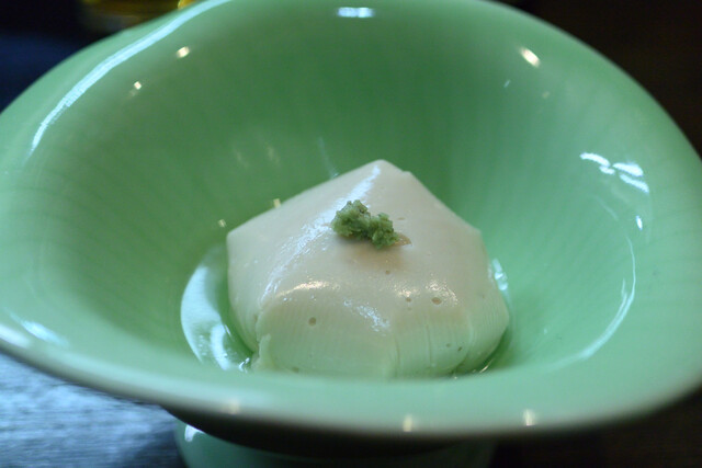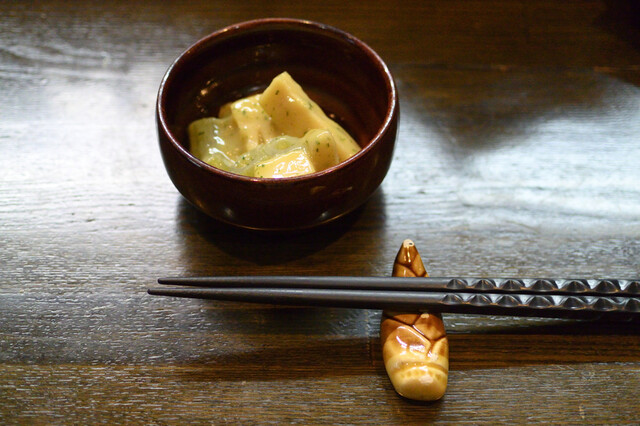 ◇お通し(とうもろこしを練り合わせた創作豆腐)