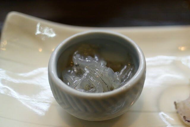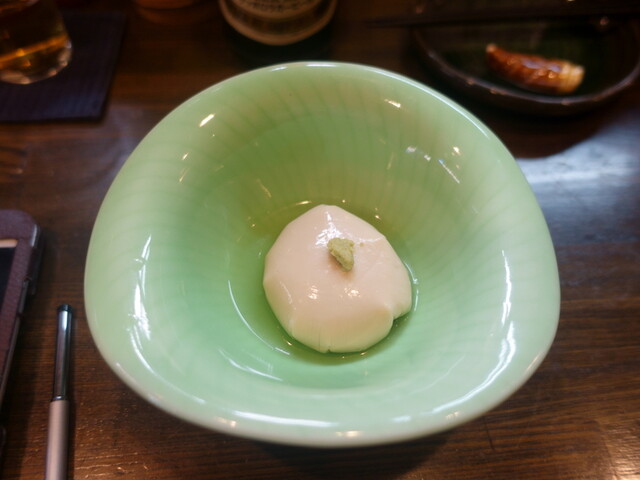 お通しに付いた出汁巻き卵がとても美味しくお隣の常連さんはお通しをお代わりしてたよ。だし巻き卵がご縁でお隣の常連さんとお話をしましたが昨年末に同じようなシチュエーションでご一緒した事をお互いに覚えていてました。大納言さんのこじんまりしたカウンター席は「袖触れ合うも多少の縁」のことわざが似合う良き場ですね。