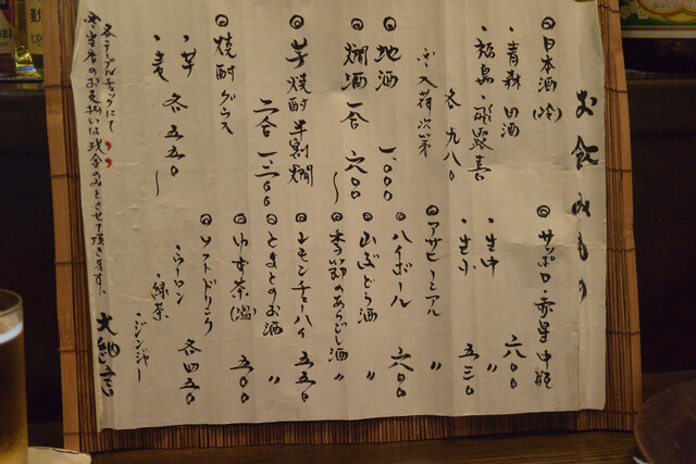 日本酒の品揃えも素晴らしく厳選された銘柄ばかりでいつも悩んでしまいます。今年の3月に放送された「吉田類の酒場放浪記」の中で飲まれた「月不見の池」がありましたので酒場詩人の気分になったつもりでいただきました。大納言さんにお忍びで訪れた事がある吉田類氏のサインが隠れた場所に飾ってある事を私の妄想の流れから思い出しましたね(笑)