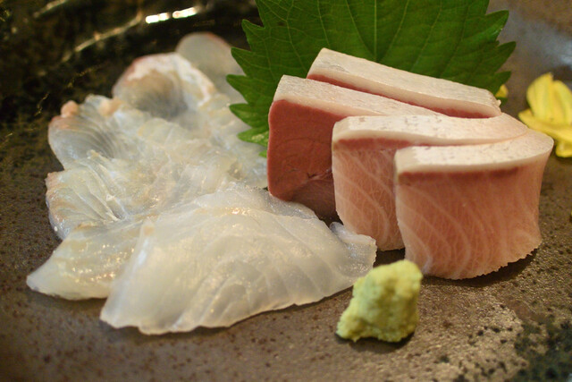 大納言さんの一番人気でもある刺身盛り合わせは外せないので最初に頼みましたがこの日は魚の仕入れが少なく鯛とカレイの二種類でしたが旨味を上手に引き出しとても美味しかったですよ。
