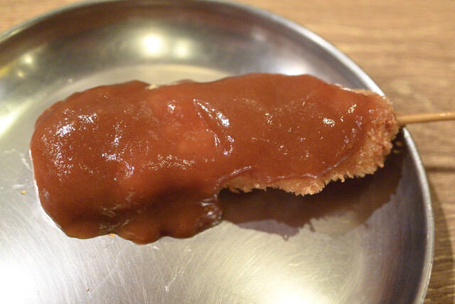 ここの串揚げや焼鳥はとても美味しくどの料理も一切の手抜きもなく両立されたスタイルはいつも感心させられ仕込みの大変さがしっかりと伝わってきますね。私がここで一番大好きな串カツは焼鳥にも使用している鶏もも肉を使った串揚げです。焼物のつくねも一度食べると癖になる旨さですよ。希少部位を使った焼鳥も美味しく赤ウインナーとうずら卵の串焼きもお決まりの様に頼んでしまうんですよね。