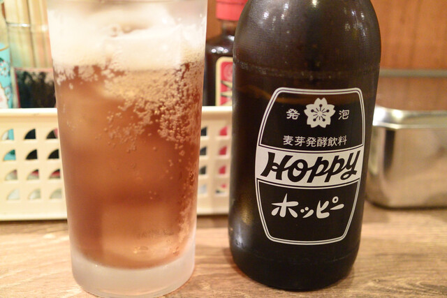 日本料理や日本酒を楽しむお店が続いたので揚げ物とホッピーで気分転換をします。ではカウンターの片隅で料理とお酒を頂きます。