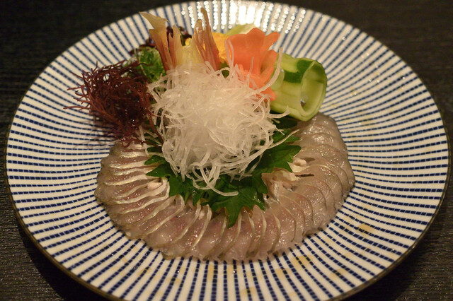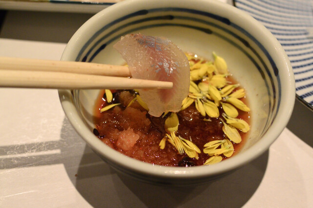 ここのお通しはいつも充実していますのでしっかりとお酒が進み季節感とあしらいが素晴らしく料理人の技が光る内容です。中でもなますは人参ではなく柿と大根を使った紅白なますは昆布だしと酢の加減が絶妙でとても美味しかったですね。