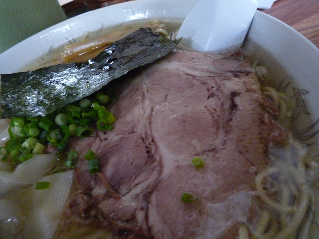(塩チャーシュウメンをオーダーする人が多かったのでちょいと迷いが出たのですがこれだけBIGなチャーシューが入ってるんだったら問題なし・・・ナイスチョイス!)