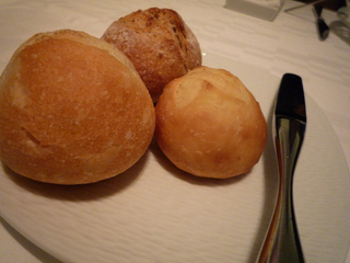 相方が3種のパンのうちドチラをお召し上がりですか?と問われ全部〜なんていうからオイラの皿にも3個のパンが・・・笑