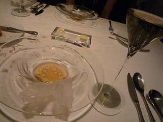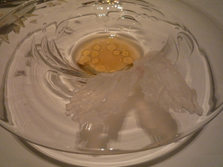 海老コンソメのジュレが口に入ってとける〜味の変化も面白いですなぁ〜