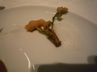 【フランス産白アスパラガスのフリットパルメザン香る卵黄と共に】
