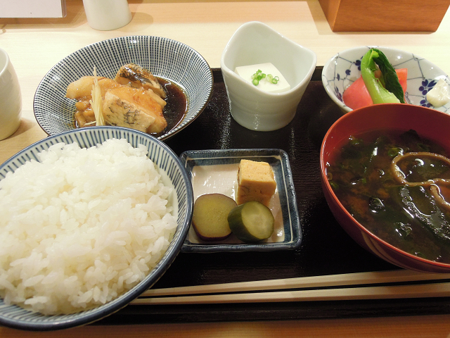 銀むつの煮付け・冷奴・日替わり小鉢・玉子焼き・香の物・日替わり味噌汁にご飯・・・
