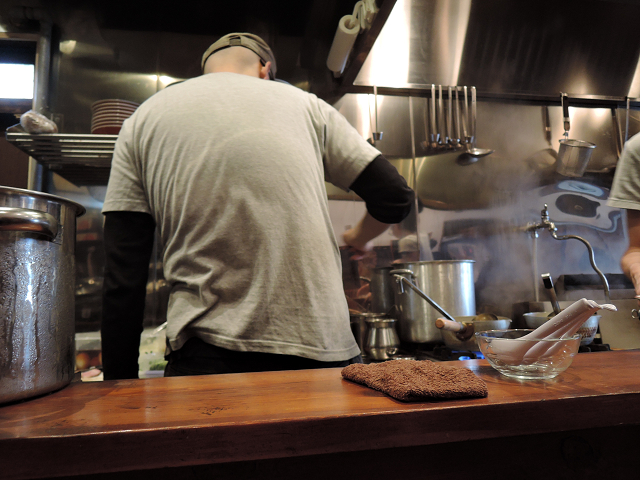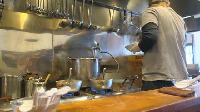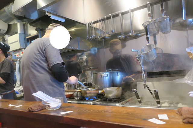 厨房での調理方法を眺めながら丼の提供を暫し待つ・・・
