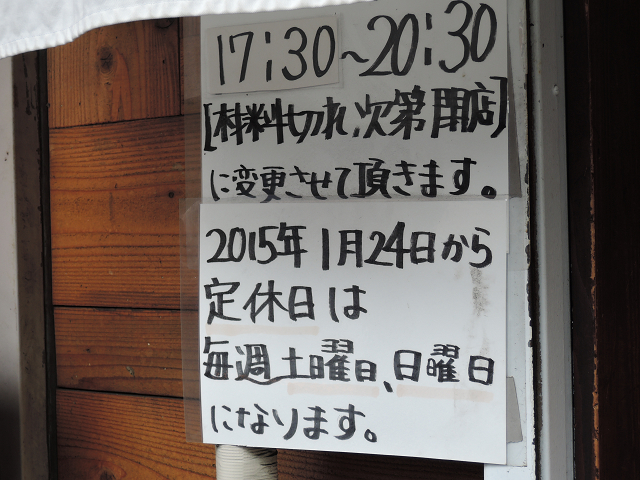 定休日&夜のスタート時間も変更になったみたいですなぁ〜