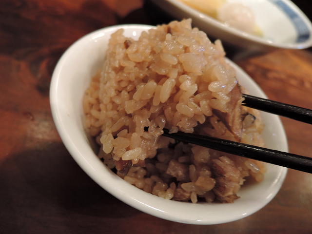 炊き込みごはんはチャーシューの煮汁で炊き込まれたようなビジュアルです!