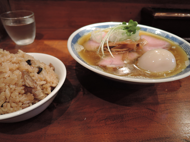 【煮干しそば&味玉・炊き込みごはん】