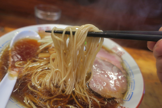 小麦の風合いが気持ちいい麺に醤油スープ・・・