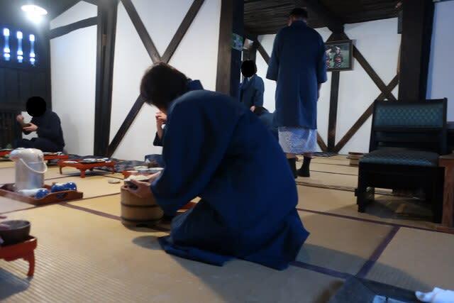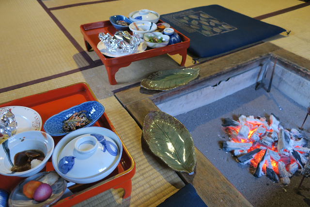 朝食会場である本陣のとある部屋の囲炉裏縁に通されました!