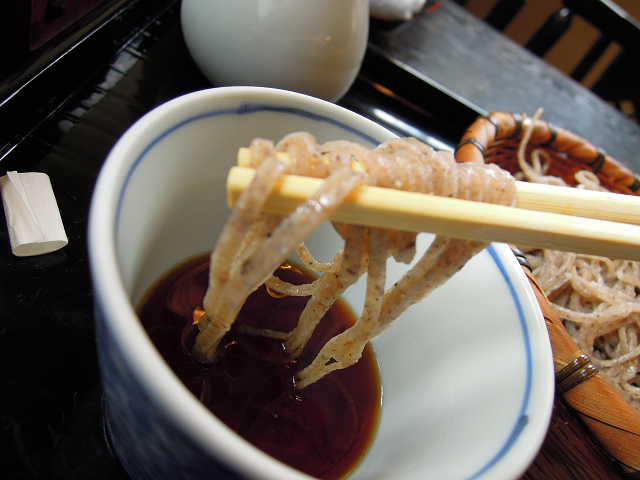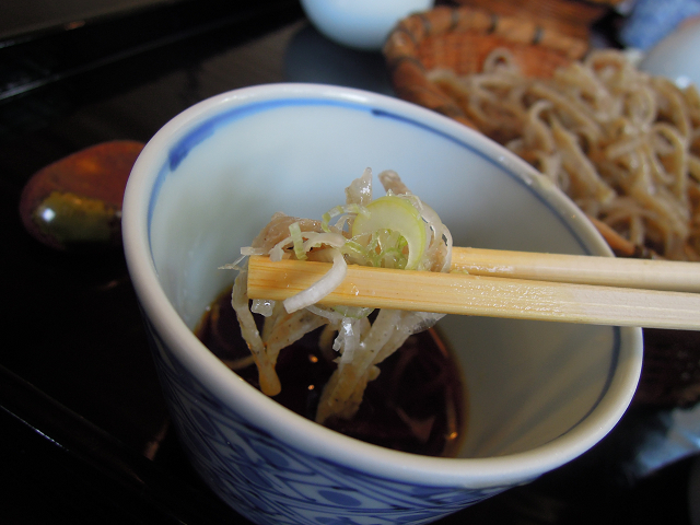 せいろを汁で啜る