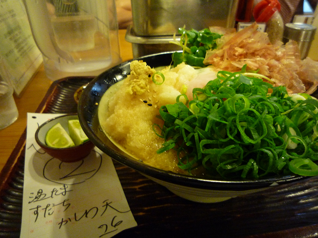 【ぶっかけ<冷>大盛<大>・かしわ天・温泉卵・すだち 完食】