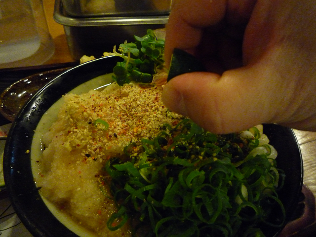 ゴマをスリスリ・・・七味をパラパラっとして準備完了!