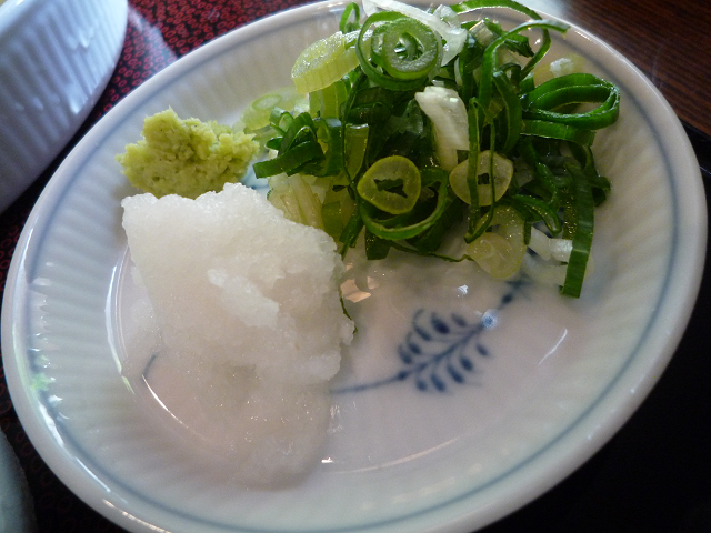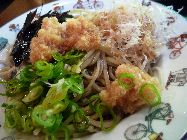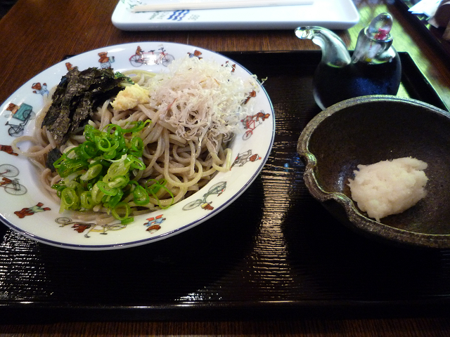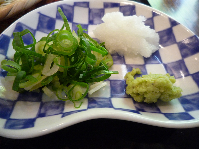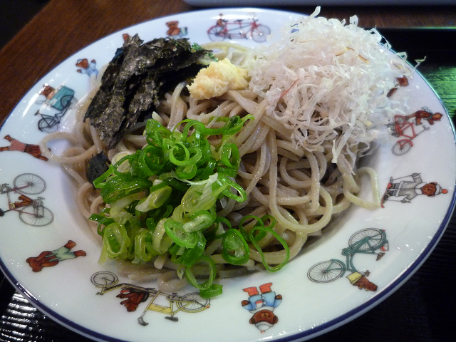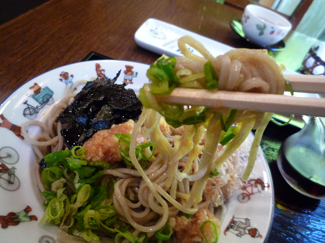 蕎麦の上には海苔・葱・鰹節・おろし生姜が乗っかってます!