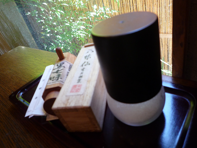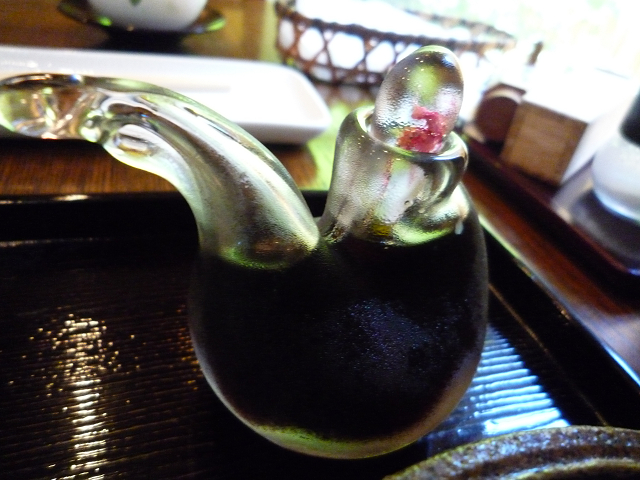 辛味大根を乗っけて涼しげな容器に入った汁を回し掛けます!