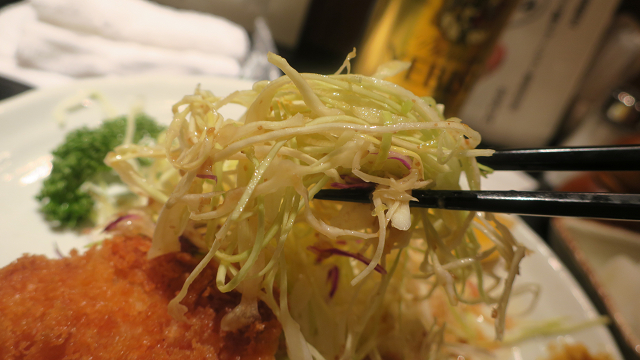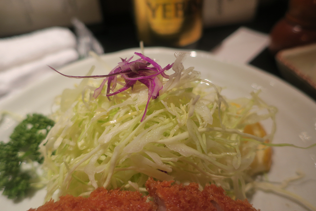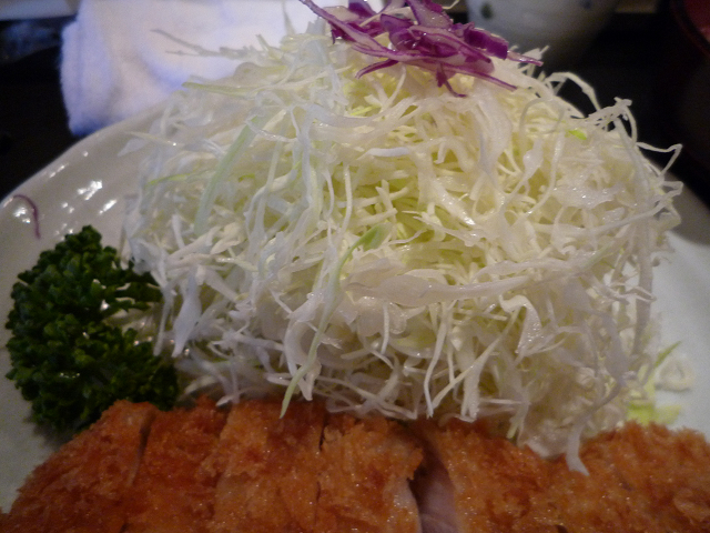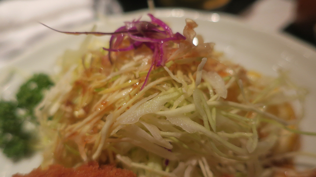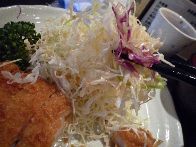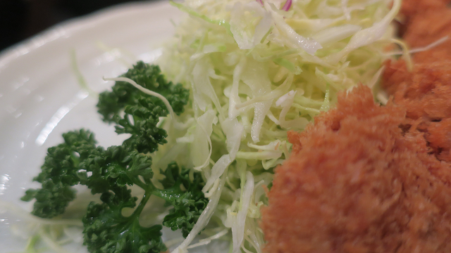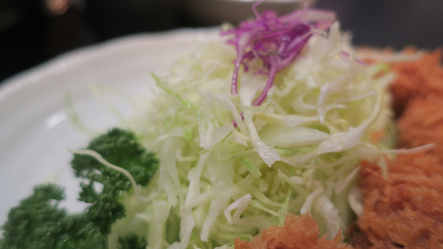 ロースカツに添えられておるのはキャベツ&赤キャベツ少々とパセリとレモンです!