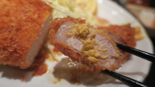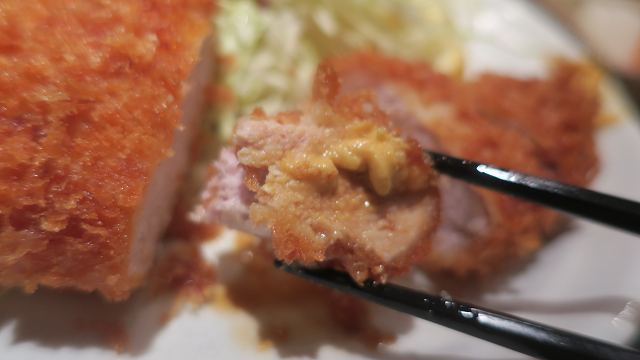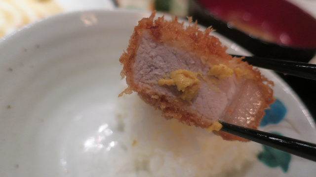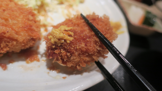 辛子をつけたカツにちょいとソースを垂らして・・・