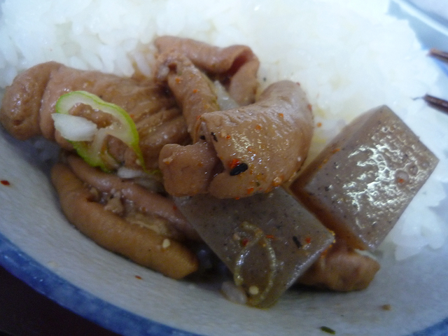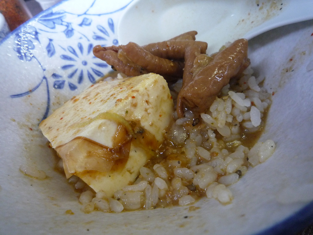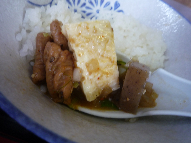 豆腐入りもつ煮の乗っけ食い