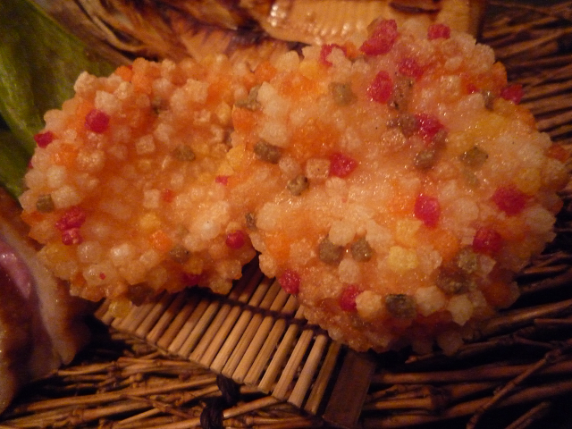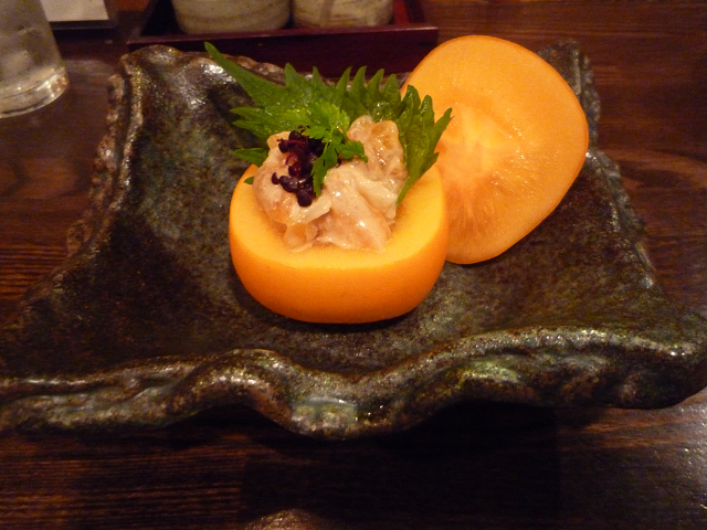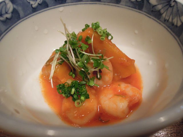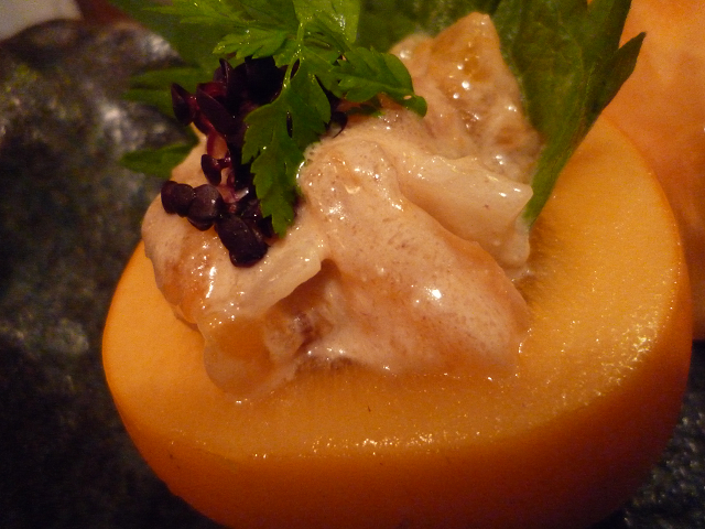 海鮮(イクラ・ホタテ)にちょいと杏が添えられており・・・杏の甘酸っぱさでスッキリ食べられました!
