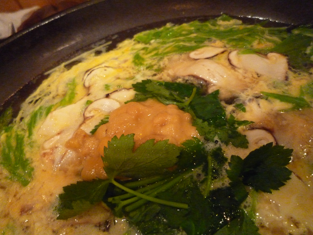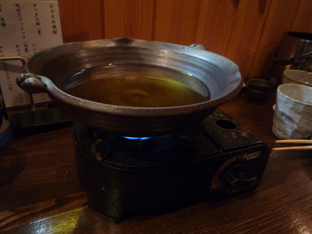 出汁のはられた土鍋の提供によりメインなコヤツの御提供〜