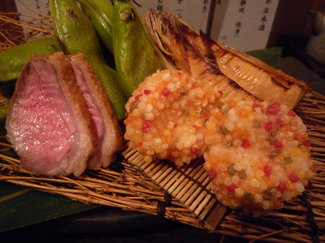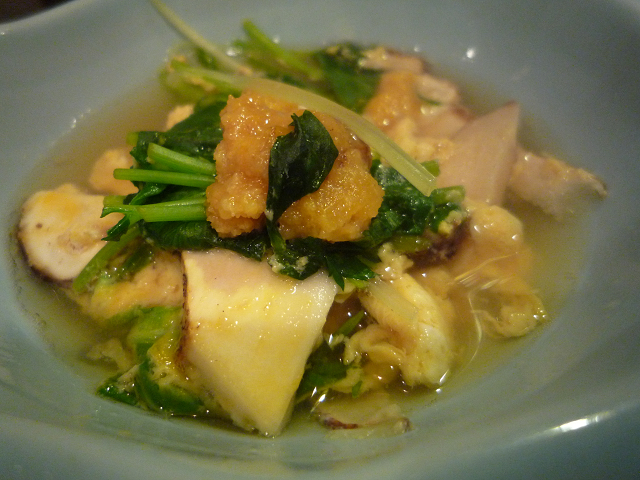 揚げしんじょう・鴨・筍・空豆・銀杏