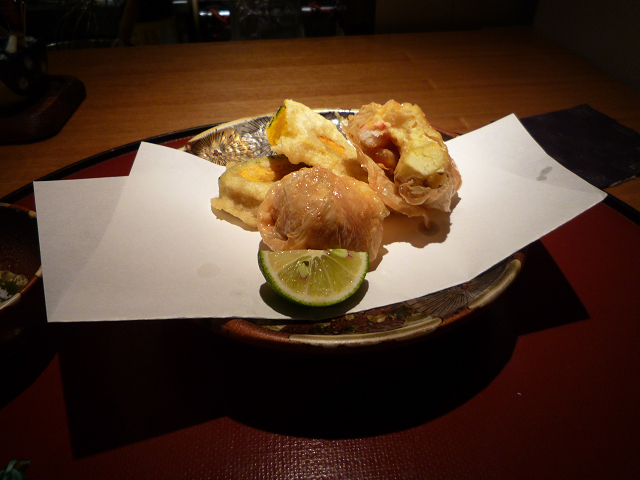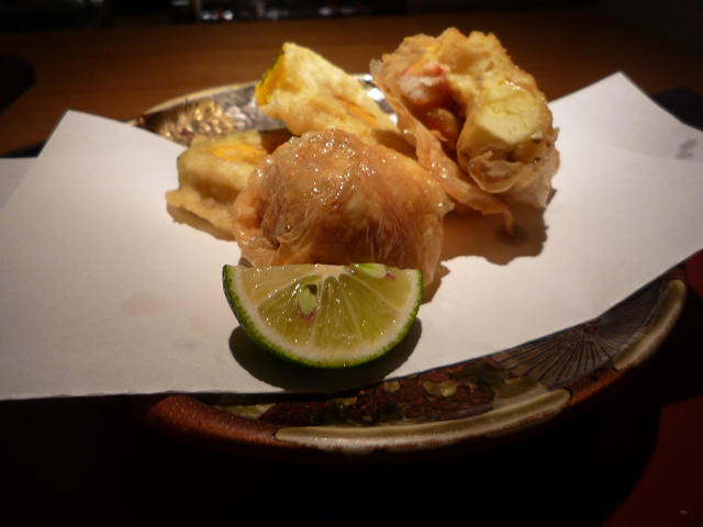 カニ・栗・魚のすり身の湯葉巻き揚げに南瓜天!