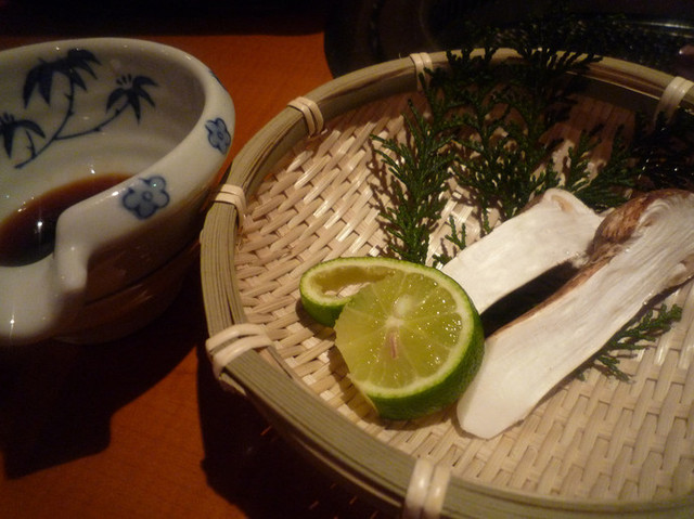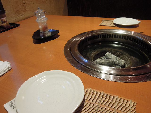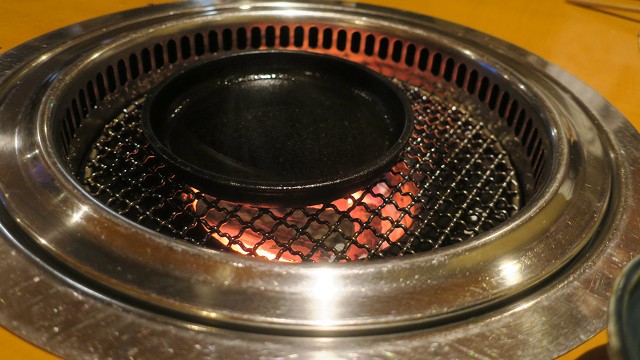 焼しゃぶ:丸い鉄皿でさっと焼きます