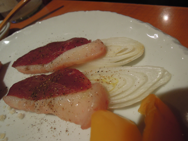 ひうち刺&タン刺:こんな立派な肉を生で・・・
