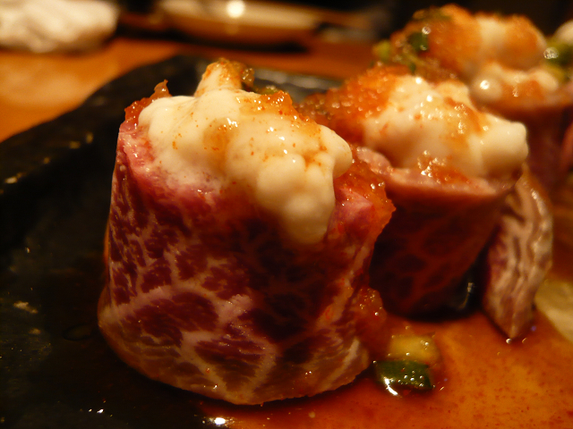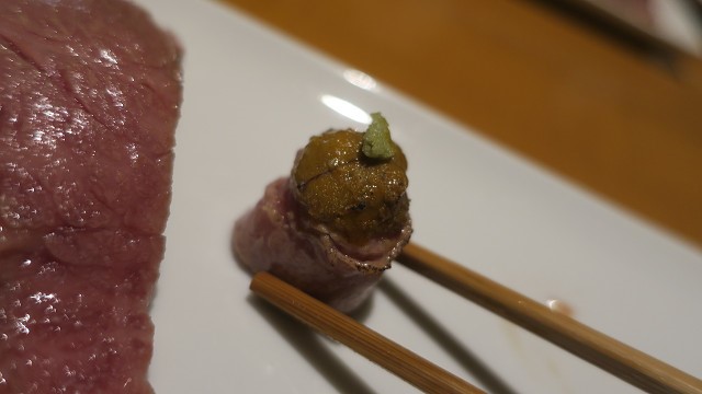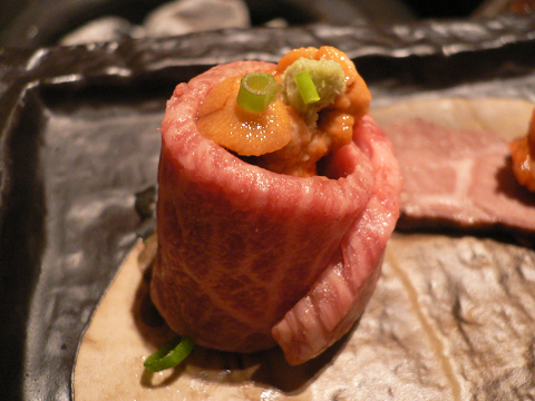 雲丹の神戸牛ロース巻き:店の人気メニュー・・・美味しいですよ~