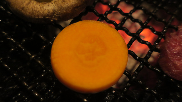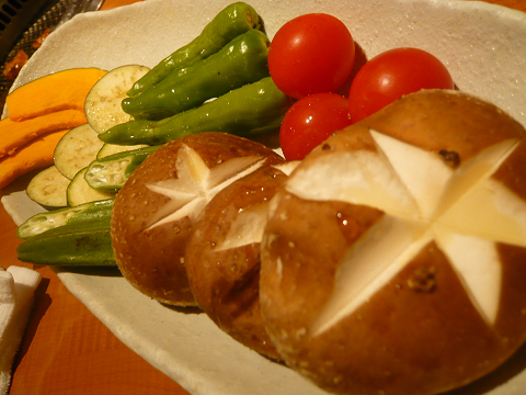 にんじんと肉厚な椎茸にはガーリックバターがタップリと乗っかっております!