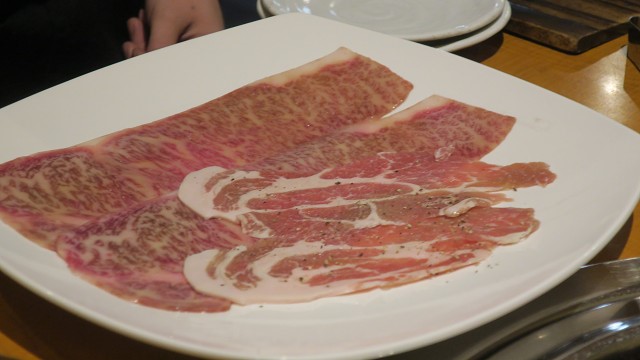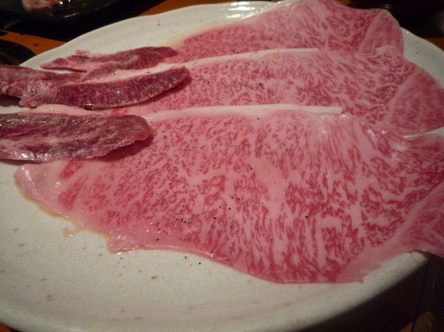 焼きシャブ(サーロイン&ツラミ):美しいサシのサーロイン