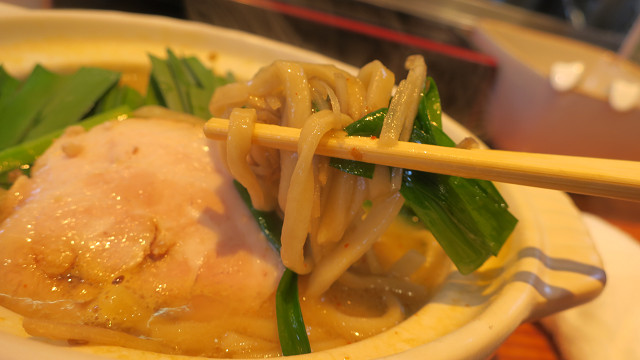 硬めに茹でられた平打ち麺の口当たりが面白い・・・