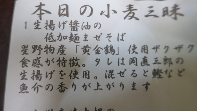 【小麦三昧<生揚げ醤油の低加麺まぜそば>】