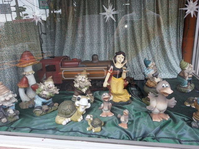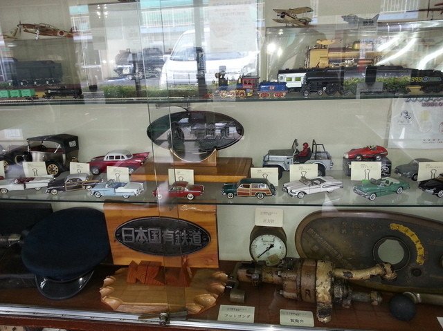 お子様用乗車できる機関車の階段下には童話の品々が・・・