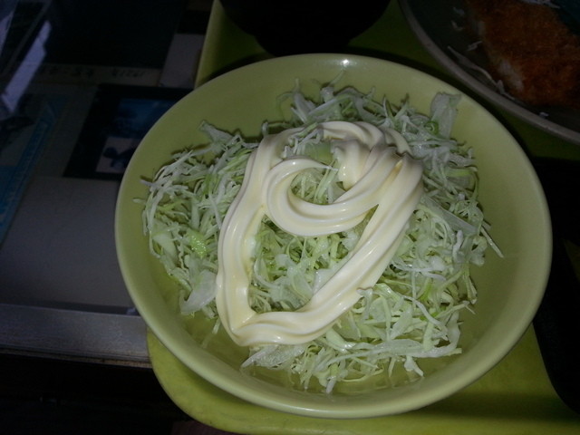 刻みキャベツも、どデカいマヨネーズのチューブタイプが卓上においてります。