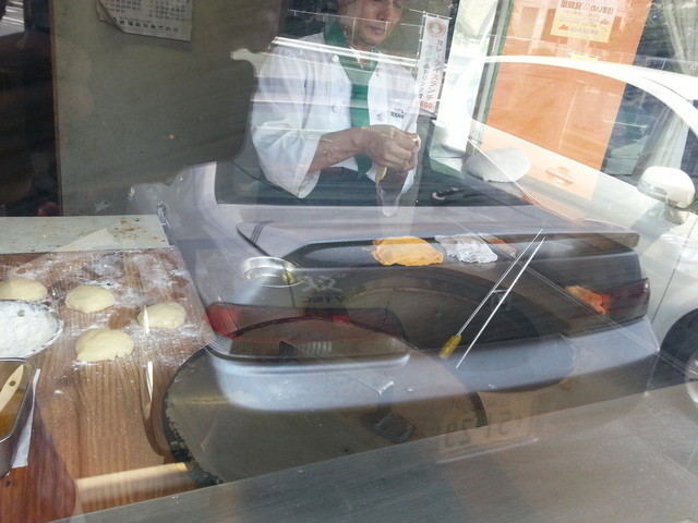 お店出て、ガラス越しに釜のある厨房を写真撮影しましたが、ガラスの映りこみが多く雰囲気イマイチでm▽(。≧Д≦。)▽mスマンダースの犬。