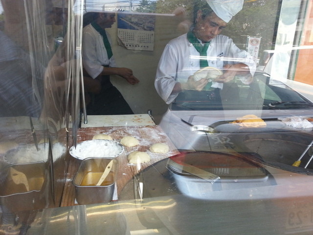 店員さんが釜でナン焼いてます。ガラスに映りこみ多くてすいません・・・