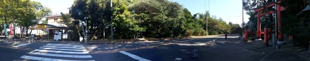 身体が次のカーブを覚えている感じで、走るのは苦になりませんでしたが、自転車や歩行者・ジョギングされてる方もおられますから、ちょいとスピード高めくらいで走り抜けて到着したのが、境内鳥居前にある駐車場です。