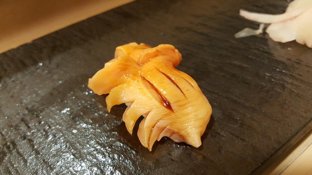 烏賊→かわはぎ→鯖→赤身→中トロ→穴子→ガス海老→赤貝→ウニ→巻物→卵焼き