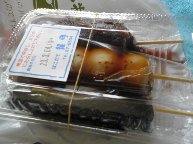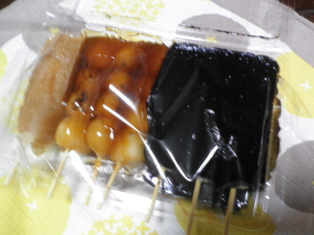 残念だったね、と言うと、朝8時半からって書いてるよ、明日寄ればいいじゃん、どうしても焼きだんごも食べたいらしい。