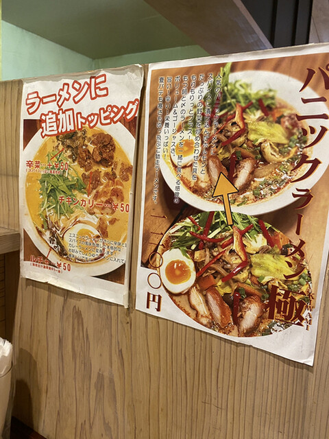 メニューを見ると、これまた個性的なラーメンがズラリ。ネーミングのインパクトでは「パニックラーメン」と言うのが目を引きましたが、折角なので「ラーメンランチ」850円で、ラーメンが選べる様でしたので「エスニックラーメン」をチョイス。