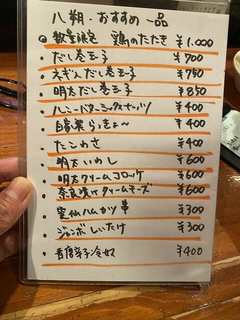 ところで帰る際に、「八朔」と言うお店の名前の由来を店主に聞いたら、もう亡くなってしまった愛犬の名前が「八朔」ちゃんだったとの事。昔は「三ノ宮」と言うお店だったみたいですね。これは、今も前原の方にお店があるようですが、経営は全く別との事。そちらも少し興味がありますが、近くにあるコチラのお店に、今後も通わせていただきまーす。ご馳走様でした〜!