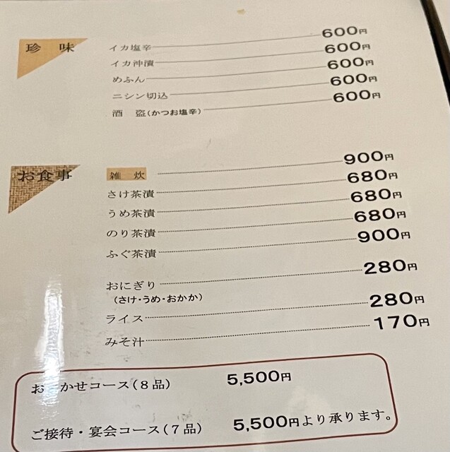 つまみにいただいたのは、イカ沖漬(北海道らしくルイベ)、珍味めふん、酒が進みます。一品料理で色々といただきました。うなぎ白焼きは大変ふっくらとした焼き上がり。上品な仕立てです。白子は良質。文句ない一品。ふぐ刺は専門店並みの質。サクラ海老のかき揚げ、天ぷら盛り合わせと天ぷらもなかなかの高得点。このお店は和食店として欠点がないように見受けます。