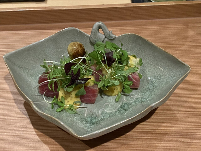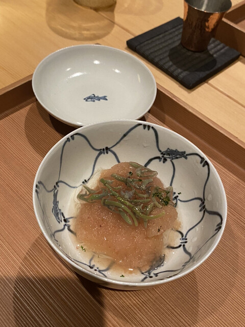 途中に出てきた鰻などは地焼きで皮目をパリッと仕上げて身はふっくら、甘さ控えめのサラッとしたタレで焼いた蒲焼は、コース料理の一品として流れを崩さず、しっかりとした存在感を主張してくる当たりが良いです。他の品もそうなのですが、一品一品それぞれ主張してくるのですが、バランスを崩すことなくコースを成立させている当たりが秀逸でした。