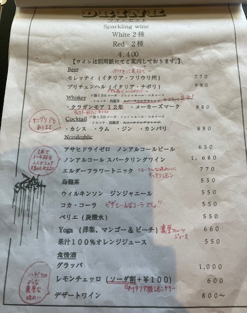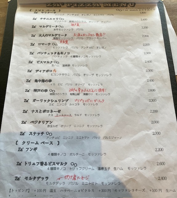 3名でのオペレーション。1階は2名席が3つです。2階席もあります。ピザのメニューだけで30種類もあります。ランチはピザのみのようです。メニューにあるメガネのマークがお薦めになってます。
