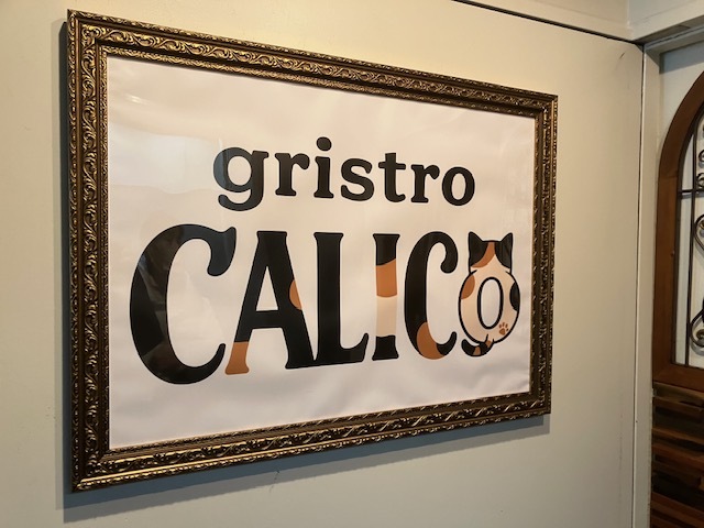 到着しますと予約して伺いましたので、入ってすぐ右手のテーブル席を案内されます。カウンター6席とテーブル席が1つの小さなお店です。席上のランプも1つ1つ形が異なる気の使いよう。CALICOは三毛猫の意味があるようで、店内は猫ちゃんグッズが豊富です。